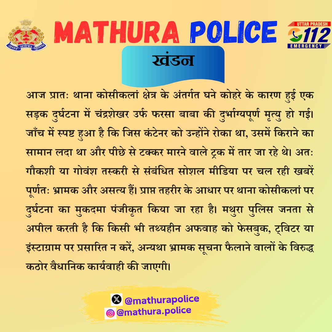 — MATHURA POLICE (@mathurapolice) March 22, 2026