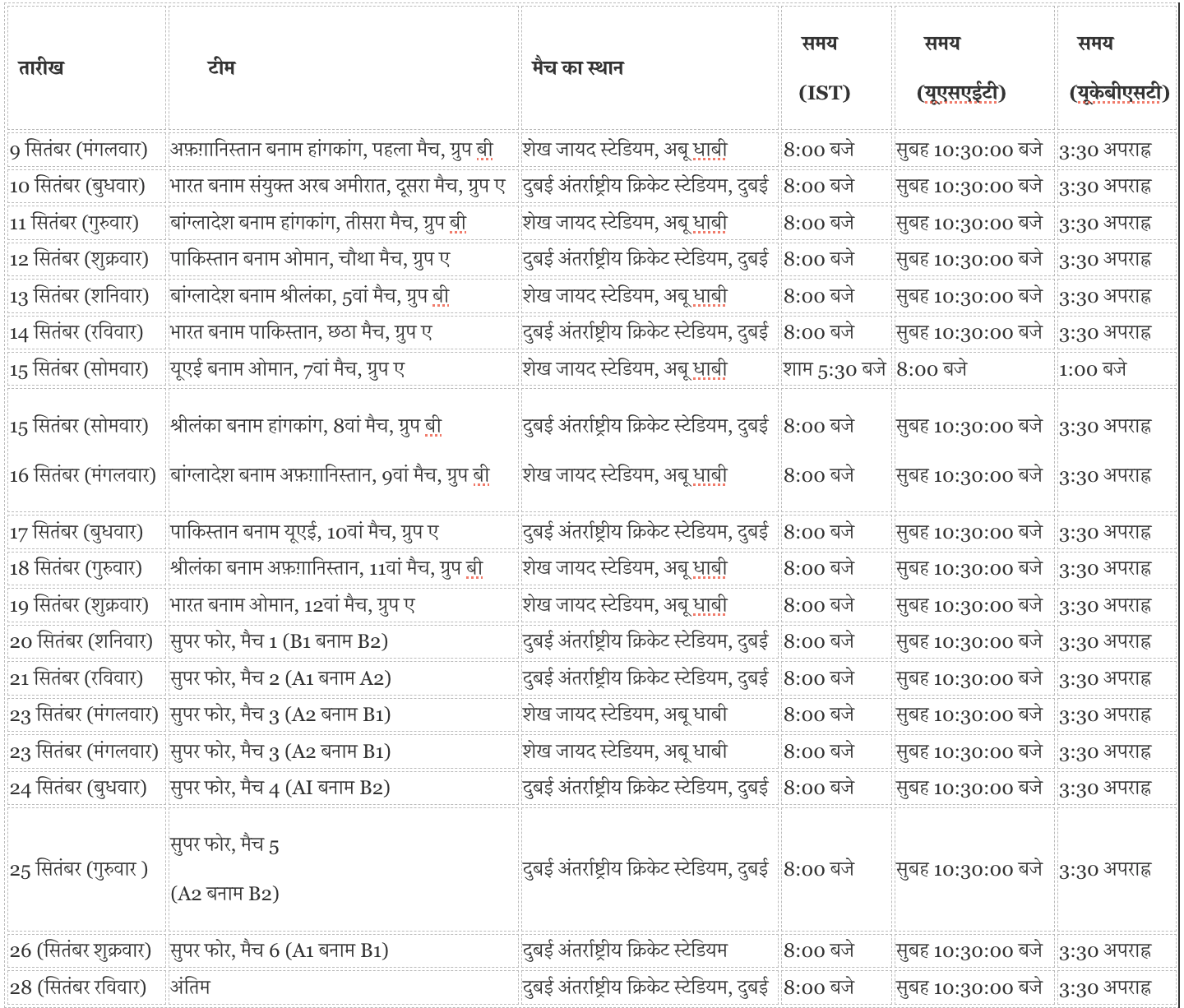 ग्रुप-बी का यह मुकाबला टूर्नामेंट का उद्घाटन मैच भी है। अफ़ग़ानिस्तान की कप्तानी करेंगे राशिद खान, जबकि हांगकांग की कमान संभालेंगे यासिम मुर्तज़ा। इससे पहले अफ़ग़ानिस्तान रविवार को यूएई टी20 ट्राई-सीरीज़ के फ़ाइनल में पाकिस्तान से हार चुका है। अब टीम एशिया कप में नए जोश के साथ सकारात्मक शुरुआत करना चाहेगी। आमतौर पर एशिया कप को टी20 विश्व कप की तैयारी माना जाता है, लेकिन इस बार यह टूर्नामेंट अपने साथ और भी बड़ी अहमियत लेकर आया है।