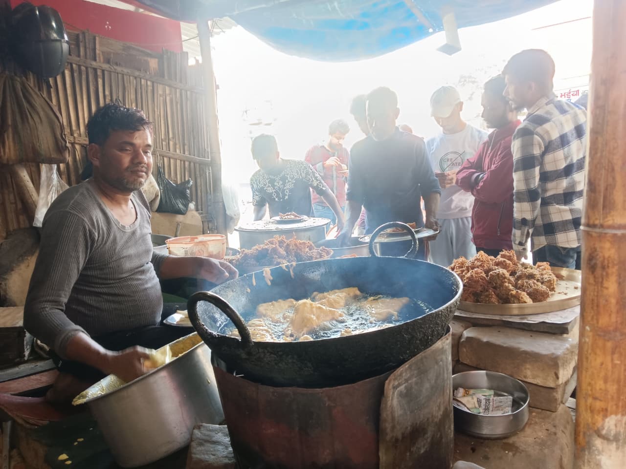 नीचे दी गए फोटो में देख पा रहे होंगे, दुकान पर भारी भीड़ लगी रहती है। कुछ लोग खड़े होकर नाश्ता करते हैं तो कुछ पास रखी बड़ी बेंचों पर बैठकर आराम से खाते नज़र आते हैं। यह नाश्ता हर किसी के लिए पसंदीदा है क्योंकि यहाँ का बचका बहुत ही फेमस है।