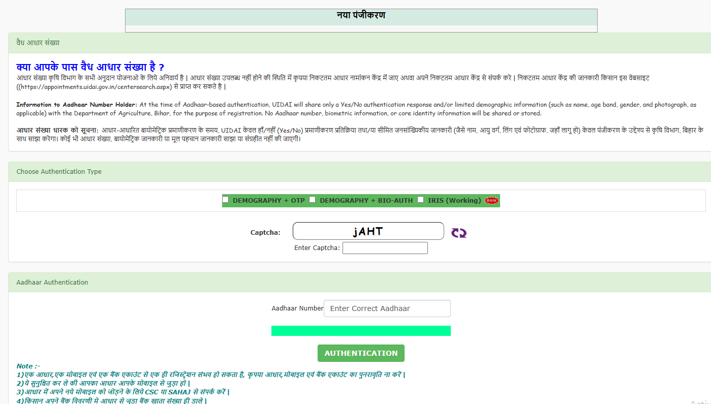 आवेदन करने पर आपको पंजीकरण संख्या डालनी होगी। यदि आप के पास पंजीकरण संख्या नहीं है तो आप नया पंजीकरण संख्या ले सकते हैं। इसके लिए आप https://dbtagriculture.bihar.gov.in/RegFarmer/ लिंक पर क्लिक कर सकते हैं।