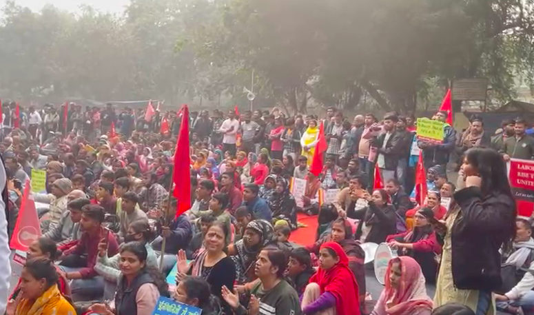 बीते कल यानी 14 दिसंबर 2025 को नई दिल्ली के जंतर-मंतर पर कड़े पुलिस बंदोबस्त के बावजूद एक हज़ार से अधिक मज़दूरों ने इस चार नए लेबर कोड के खिलाफ प्रदर्शन किया। इसमें दिल्ली, हरियाणा, उत्तर प्रदेश और राजस्थान के आसपास के इलाकों से आए मज़दूर शामिल थे। प्रदर्शन में शहरी, औद्योगिक और ग्रामीण क्षेत्रों के ऑटोमोबाइल, गारमेंट, इलेक्ट्रॉनिक्स, घरेलू कामगार, मनरेगा, निर्माण, एमएसएमई, गिग और स्कीम मज़दूरों ने भाग लिया। दिल्ली-एनसीआर में MASA के घटक संगठनों जैसे मज़दूर संघर्ष संगठन, CSTU, IMKE, IFTU-सर्वहारा, ग्रामीण मज़दूर यूनियन बिहार और बनवासु ने मिलकर इस विरोध का आयोजन किया। इसके साथ ही कई अन्य ट्रेड यूनियनों और श्रमिक संगठनों के प्रतिनिधि भी शामिल हुए।