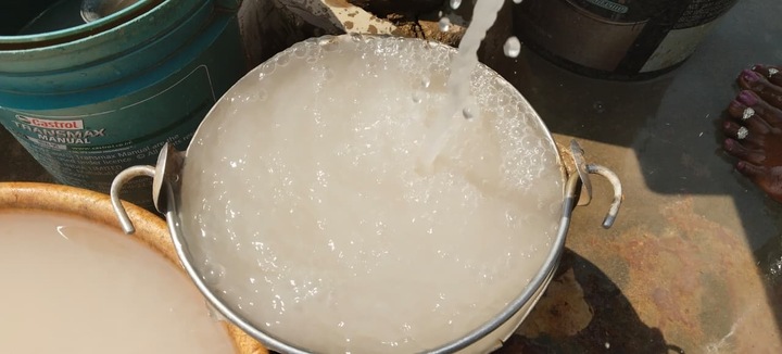 अमिलीहाई गांव की तस्वीर जहां हैंड पंप से निकाले गए गंदे सफ़ेद पानी की तस्वीर (फोटो साभार : खबर लहरिया)