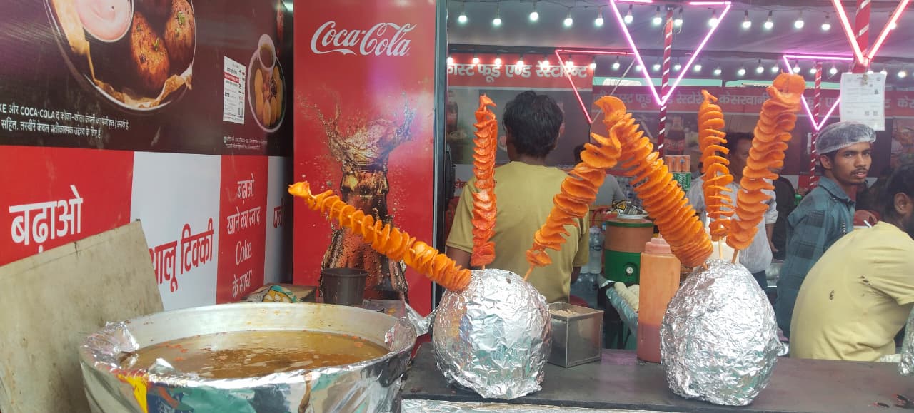 दुकानदार बताते हैं कि वह यही पोटैटो ट्विस्टर बनाने का काम करते हैं। मेला खत्म होने के बाद वे शादियों और अन्य कार्यक्रमों में भी ऑर्डर पर स्टॉल लगाते हैं। उन्होंने बताया, “जब हम 18 साल के थे, तब मुंबई में एक कारीगर से यह काम सीखा था। इसके बाद अपना खुद का काम शुरू किया। तब से हर साल मेले और बाजार में दुकान लगाते आ रहे हैं।”