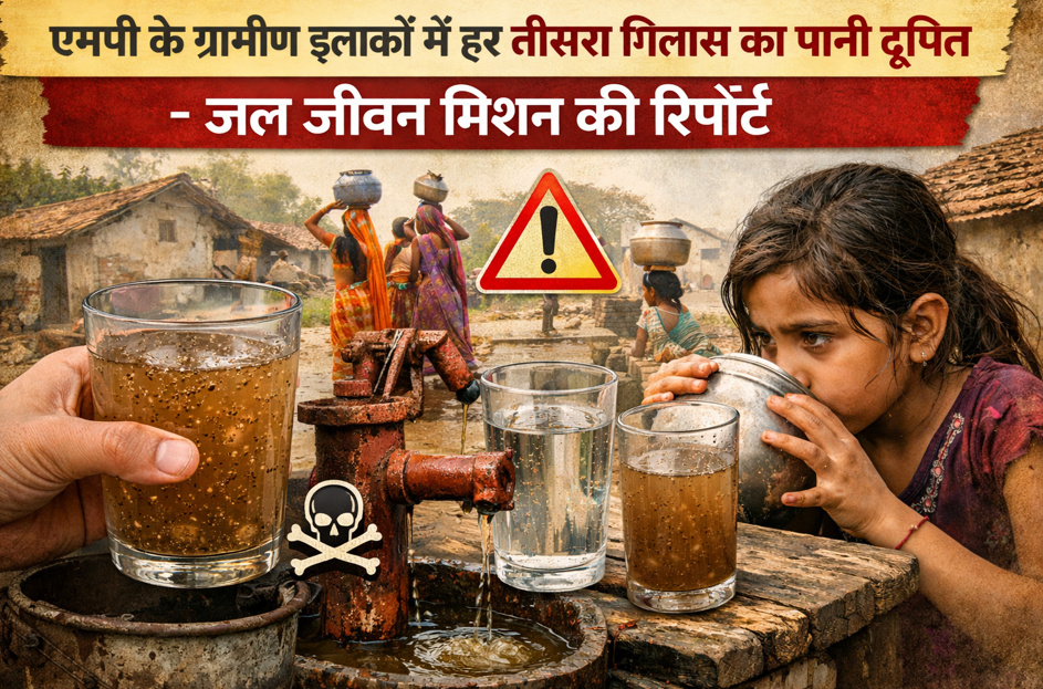एनडीटीवी की रिपोर्ट के अनुसार मध्य प्रदेश में दूषित पानी में 33% पानी के सैंपल फेल हुए इससे साफ़ पानी को लेकर चिंता और बढ़ गई है। 4 जनवरी 2026 को जारी कार्यक्षमता मूल्यांकन रिपोर्ट के मुताबिक मध्यप्रदेश में सिर्फ 63.3% पानी के सैंपल ही गुणवत्ता जांच में पास हुए, जबकि राष्ट्रीय औसत 76% है। इसका मतलब राज्य के 36.7% ग्रामीण पेयजल सैंपल असुरक्षित पाए गए जिनमें बैक्टीरिया और रासायनिक प्रदूषण मौजूद है। ये सैंपल सितंबर-अक्टूबर 2024 में राज्य के 15,000 से अधिक ग्रामीण घरों से लिए गए थे और इसके नतीजों ने सरकार की लापरवाही और भ्रष्टाचार को सामने लाकर रख दिया है।
