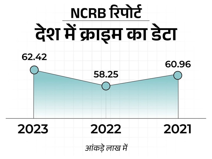भारत में कानून एवं व्यवस्था, सामाजिक सुरक्षा और नागरिकों की सुरक्षा को लेकर जब भी सार्वजनिक चर्चा होती है तो एक तथ्य हमेशा सामने आता है कितनी सुरक्षा, कितनी चुनौतियां। हाल ही में जारी हुई NCRB (नेशनल क्राइम रिकॉर्ड्स ब्यूरो) 2023 की रिपोर्ट ने इसी विषय पर एक बहुत बड़ी मात्रा में आंकड़े पेश किए हैं। इस रिपोर्ट ने न सिर्फ यह बताया है कि किन अपराधों में वृद्धि हुई है और किनमें कमी बल्कि यह हमें यह भी सोचने को मजबूर करती है कि हमारी सुरक्षा की नींव कितनी मजबूत है। देश में 2023 के दौरान हुए अपराधों की तस्वीर सामने आ गई है। NCRB के रिपोर्ट के अनुसार देश में 2023 में कुल 62,41,569 अपराध दर्ज हुए है। पिछले साल की तुलना में 7.2% बढ़ोत्तरी हुई। 2023 में महिलाओं पर 4.48 लाख अपराध दर्ज हुए जो बीते दस साल में सबसे ज़्यादा है।