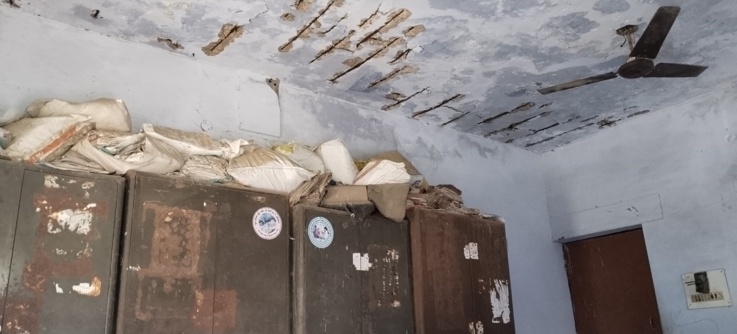 सुपरवाइज़र सुषमा कहती हैं कि “2015 से मैं इस पद पर नियुक्त हुई हूं तभी से इस भवन की यही खराब स्थिति देख रही हूं। हर मीटिंग में हम इस मुद्दे को उठाते हैं, लेकिन कोई सुनवाई नहीं होती। एक बार तो पूरा पोषाहार भी भीग गया था। गनीमत है कि वह पैकिंग पॉलिथीन में था, इसलिए बच गया लेकिन अगर कभी यह भवन गिर गया तो हम लोगों की जान भी जा सकती है।