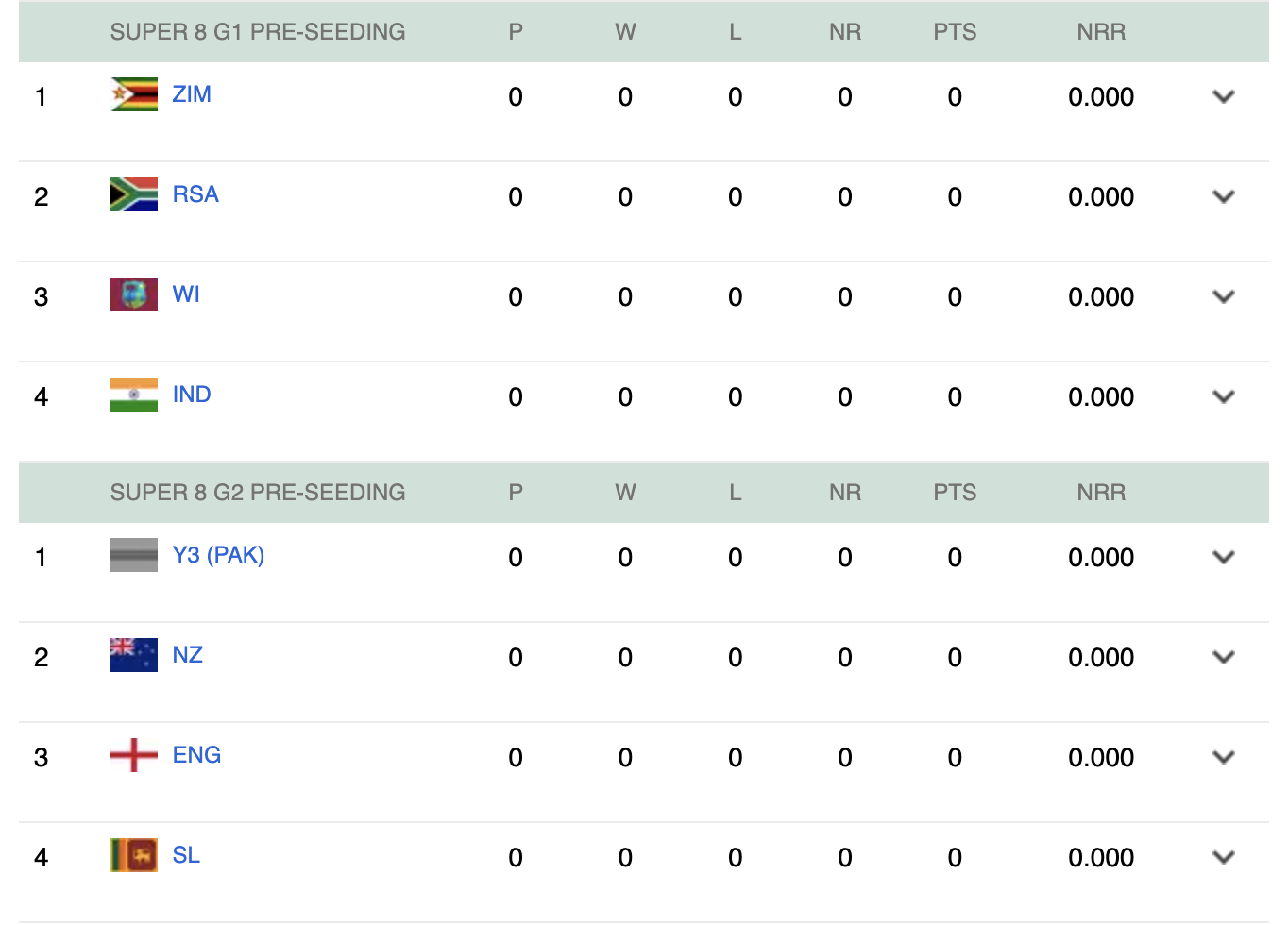 ICC टी20 विश्व कप में सुपर 8 में पहुचने वाली टीम का पहले से अनुमान लगाकर सुपर 8 के मुक़ाबले जो पहले से तय है वो इस प्रकार है: