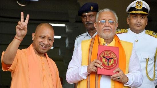 यूपी के मुख्यमंत्री योगी आदित्यनाथ और वित्त मंत्री सुरेश खन्ना की तस्वीर (फोटो साभार : x/ @MeghUpdates)