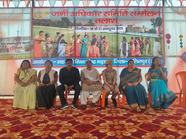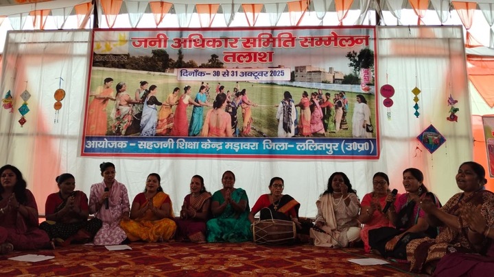 सहजनी शिक्षा केंद्र द्वारा दो दिवसीय ‘जन अधिकार समिति सम्मेलन’ का आयोजन देवा मैरिज गार्डन, मड़ावरा (ललितपुर, उत्तर प्रदेश) में 30 और 31 अक्टूबर 2025 को किया गया। इस सम्मेलन में चार ब्लॉकों की लगभग 250 महिलाएं शामिल हुईं। विभिन्न विभागों के प्रशासनिक अधिकारी, सामाजिक संस्थाओं के कार्यकर्ता और मीडिया प्रतिनिधि भी उपस्थित रहे।