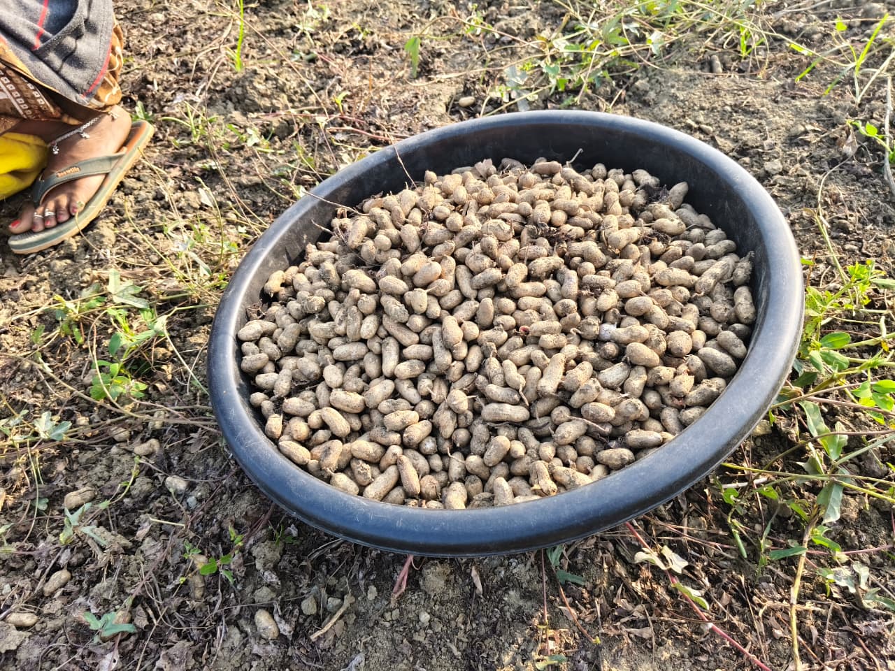 हम पिछले 5–6 दिनों से मूंगफली का सिला बीन रहे हैं और शायद 2–4 दिन और बीनेंगे। अब तक कितनी मूंगफली इकट्ठा हुई है, इसका अंदाजा लगाना मुश्किल है, क्योंकि हर खेत में मूंगफली बिखरी हुई है। कोई भी किसान हमें रोकता नहीं जहाँ चाहो, वहाँ जाकर मूंगफली का सीला बीन सकते हैं।”