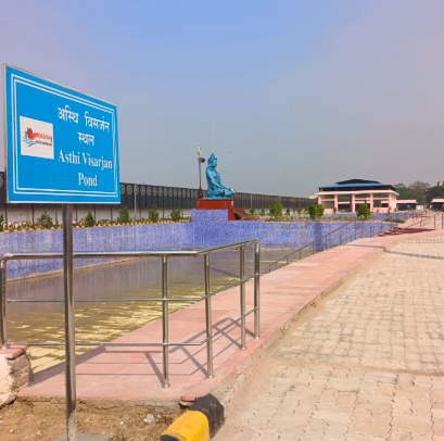 फोटो में आप देख सकते हैं कि यहां स्विमिंग पूल की तरह बड़े-बड़े तालाब बनाए गए हैं। इनमें गंगा नदी का पानी लाया जाता है क्योंकि बांस घाट गंगा किनारे स्थित है। इसी पानी में लोग अपने परिजनों की अस्थियां विसर्जित कर सकते हैं। इसके लिए साफ तौर पर “अस्थि विसर्जन” का बोर्ड भी लगाया गया है। पास में ही “स्नान गृह” की भी व्यवस्था की गई है जहां लोग स्नान कर सकते हैं।