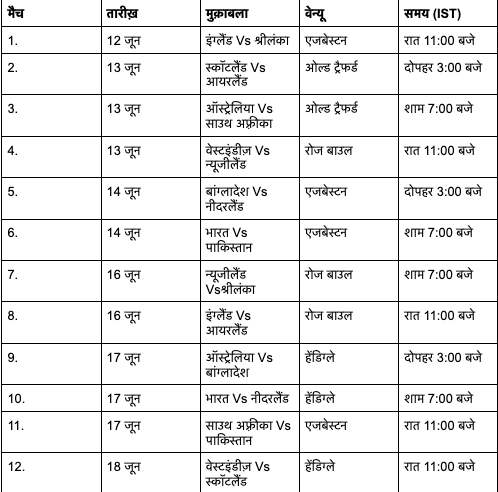 ग्रुप-1 में वेस्टइंडीज, इंग्लैंड, न्यूजीलैंड, श्रीलंका, आयरलैंड और स्कॉटलैंड की टीम है।