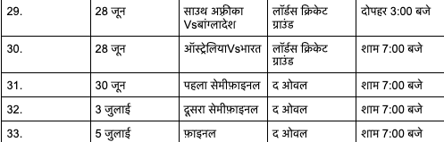 28 जून रविवार: भारत बनाम ऑस्ट्रेलिया, लॉर्ड्स क्रिकेट ग्राउंड