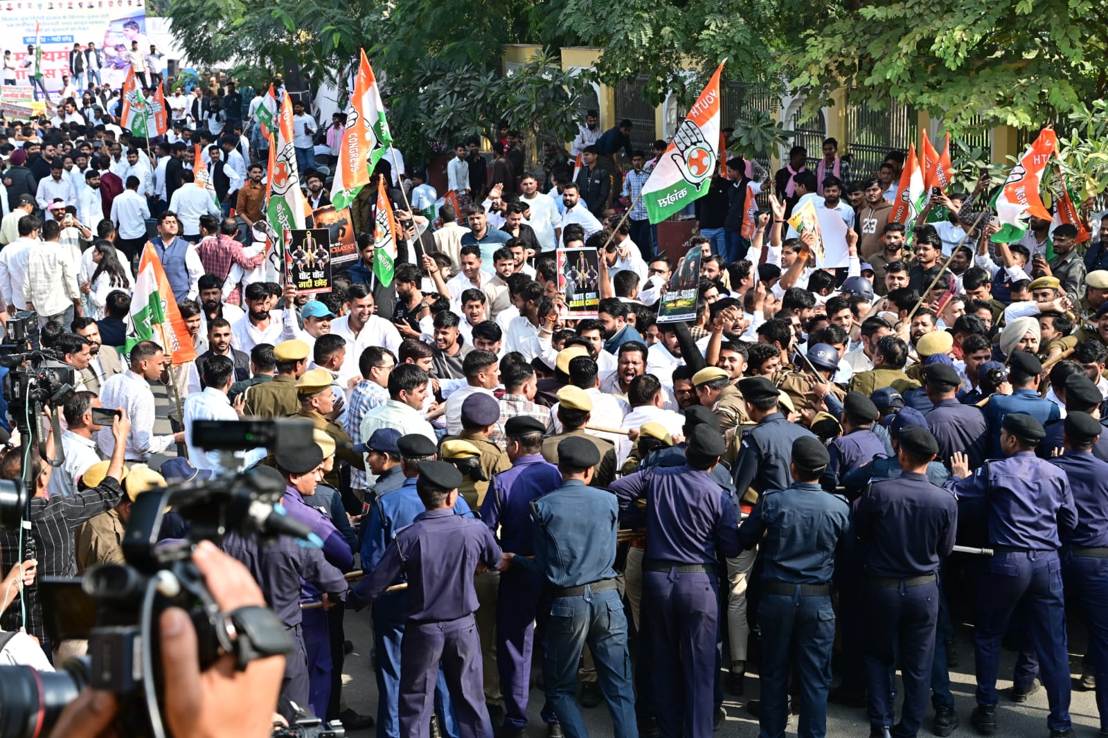 युवा कांग्रेस और पुलिस के बीच धक्का मुक्की