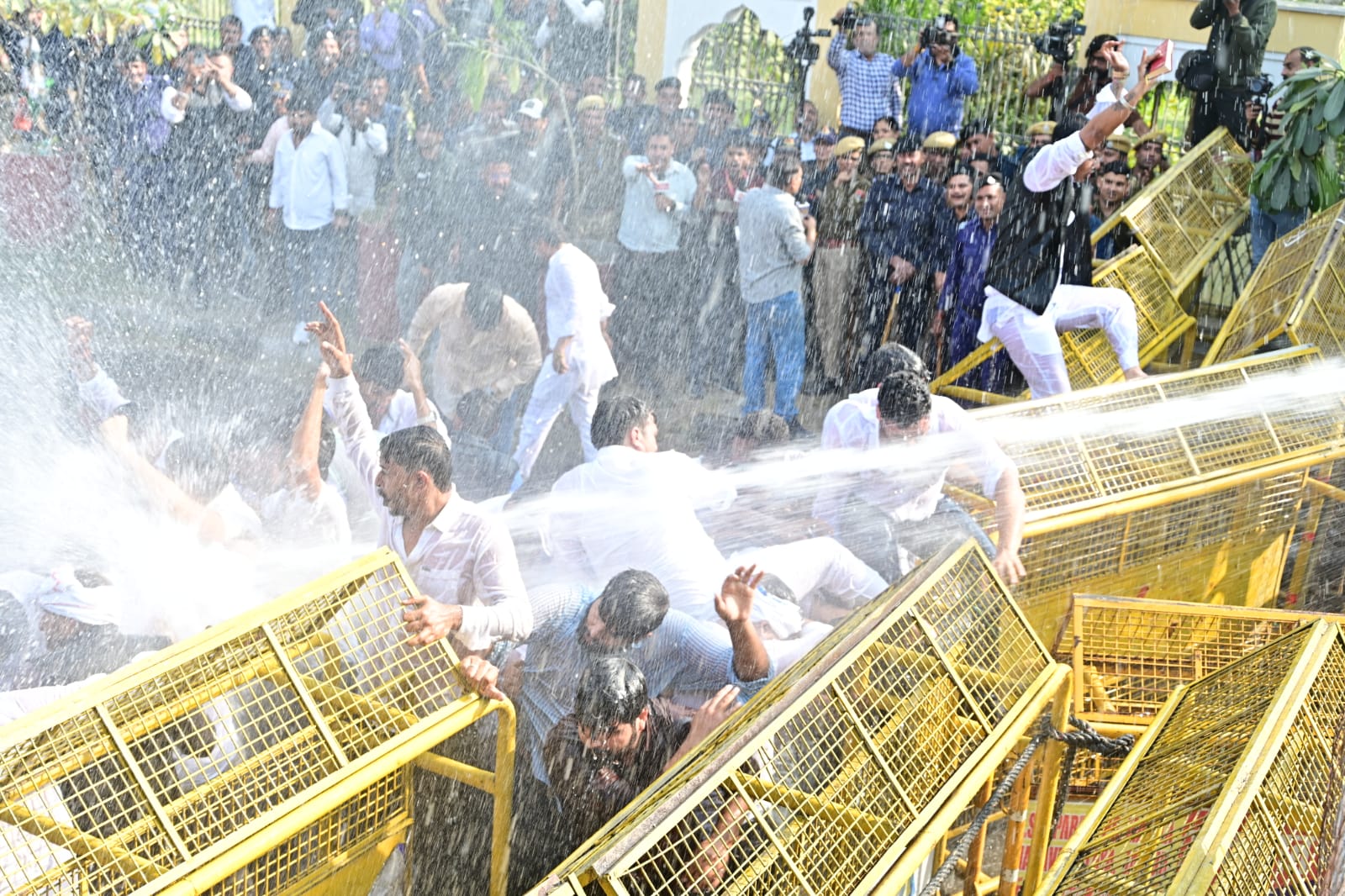 राजस्थान के जयपुर में कल गुरुवार 20 नवंबर 2025 को यूथ कांग्रेस के कार्यकर्ताओं ने’SIR’ और वोट चोरी के खिलाफ नारेबाजी की। इस दौरान हालात तब बिगड़ गए जब कार्यकर्ताओं मुख्यमंत्री आवास की ओर कूच करने लगे थे। पुलिस को भीड़ को रोकने के लिए वॉटर कैनन का इस्तेमाल किया।