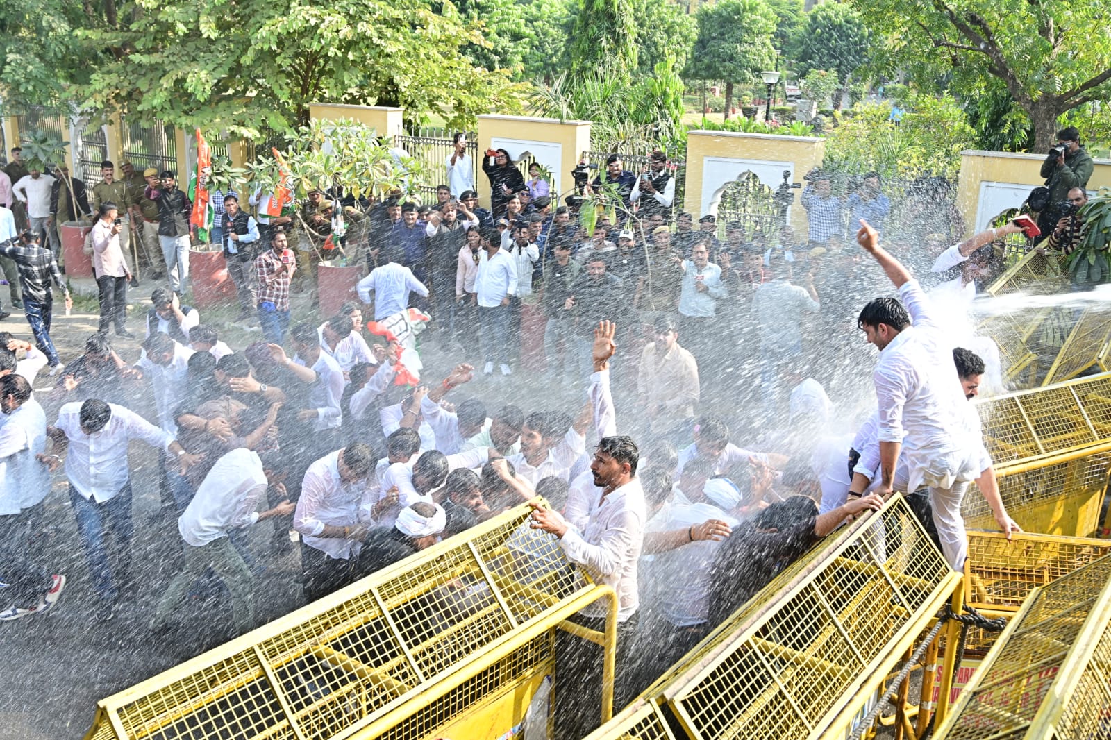 युथ कांग्रेस और पानी के बौछारों की तस्वीर (फोटो साभार :सोशल मीडिया इंडिया युथ X अकाउंट)